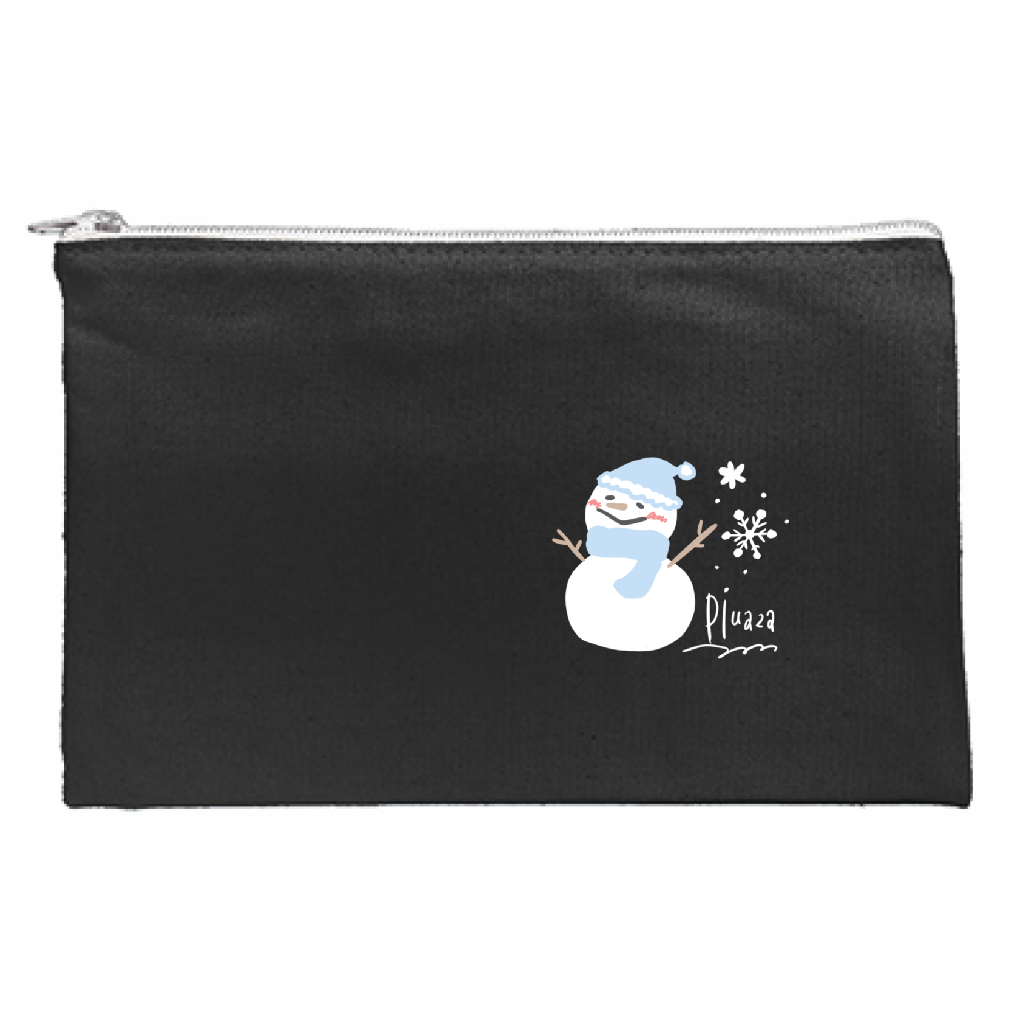 「キャンバスフラットポーチ(S) / 雪だるま (黒生地)」は、キャンバス生地のフラット型ポーチに雪だるまをデザインした日常使いに便利なのポーチです。