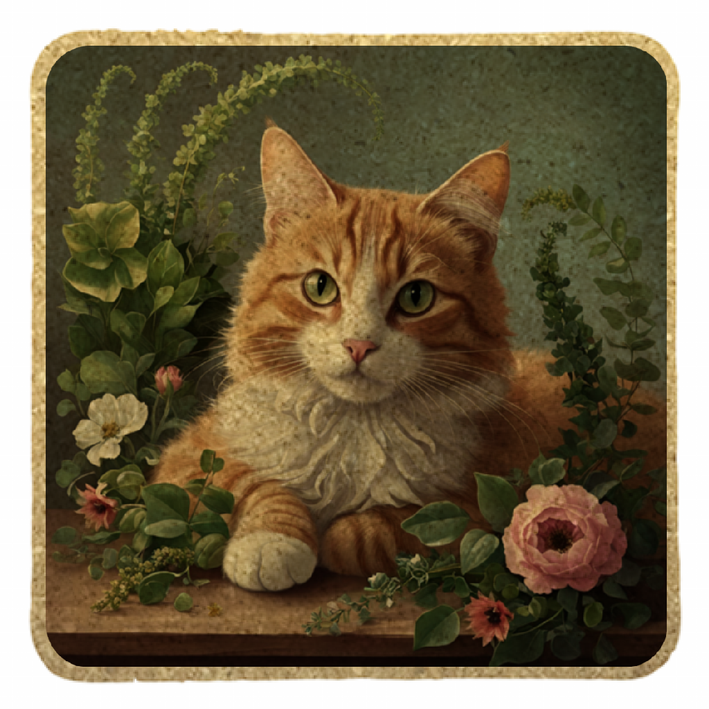 「花に囲まれた猫のコースター」は、花に囲まれた猫が、あなたの日常にささやかな癒しをお届けします。