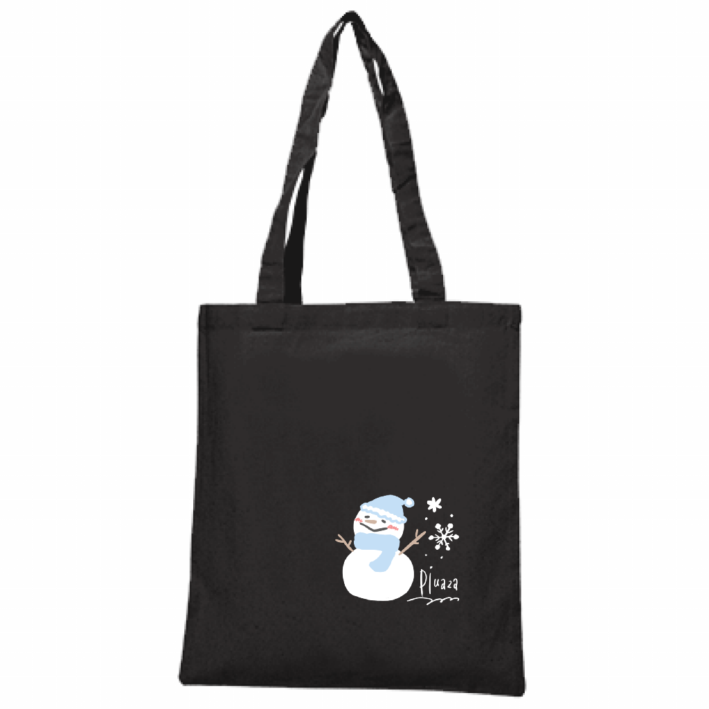 「コットン薄手トート(M) / 雪だるま (黒生地)」は、雪だるまをデザインした日常使いのコットンバッグです。
